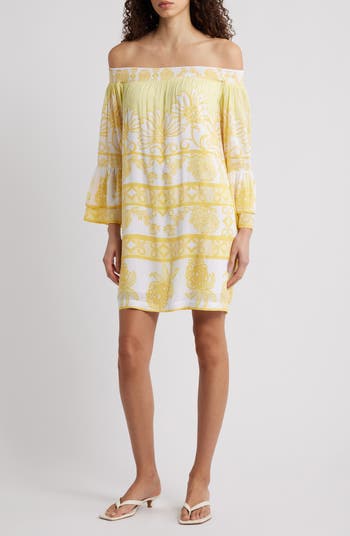 Sunny blooms brighten this swingy lightweight shift meant to show off your shoulders.