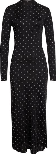 The label's focus on elegance and sensuality informs the figure-skimming silhouette of this runway-featured sweater-dress made from fluid, grommet-embellished jersey that sculpts the body and drapes beautifully as you move.