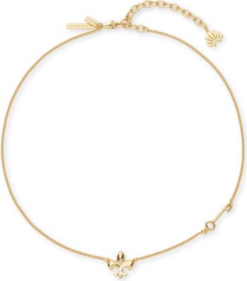 Lele Sadoughi is a proud partner of the National Panhellenic Conference. Crafted in collaboration with 12 of the NPC member organizations, each piece features official Greek letters, crests, colors and symbols. Our golden, dainty charm necklace is the perfect everyday piece.