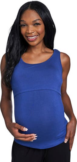 Soft, stretchy knit jersey makes this tank top a comfy maternity and nursing must-have. Lift up the layered front panel for easy, discreet nursing access after baby arrives.