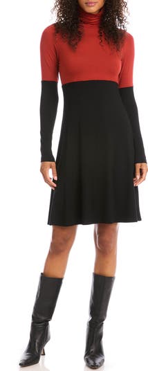 Bold color blocking defines this wear-everywhere dress done with a scrunchable turtleneck and knit from supremely soft jersey fabric.