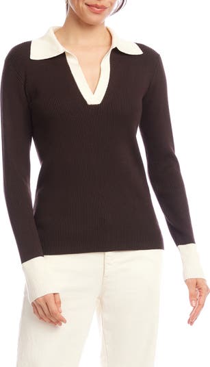Contrast Rib Polo Sweater