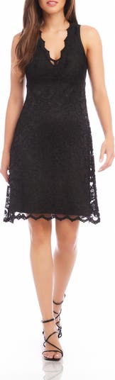 Scalloped details along the neck soften this sweet lace cocktail dress that serves up effortlessly elegant energy.