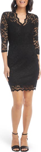 Bring on the ooh-la-la with this sultry sheath tailored from scalloped lace with plenty of stretch so you can flit freely around the room.