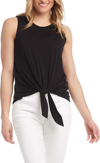 Fall in love with the ease of this soft jersey tank shaped with a drapey tie hem.