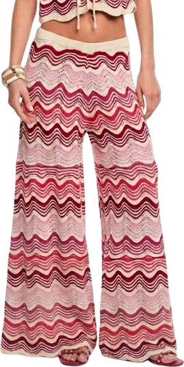 A wavy pattern and delicate pointelle stitches lend a playful vibe to these flowy, wide-leg cover-up shorts made with scalloped hems.