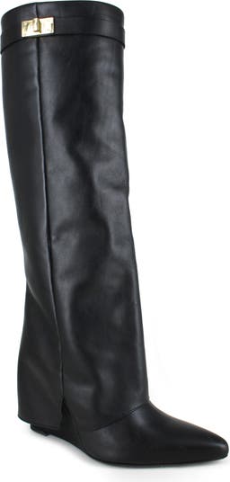 Decorative gold tone hardware gleams at the topline of this sophisticated and modern knee-high boot fashioned from smooth Italian leather.