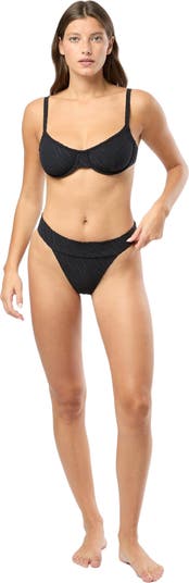 Distinguished by a mid-rise with a wide waistband, the Karina Bikini Bottom sits lower on the hips for flattering coverage. It’s made in our solid tricot swim fabric for superior resilience and a smooth fit, complete with a high-cut leg to elongate your frame.