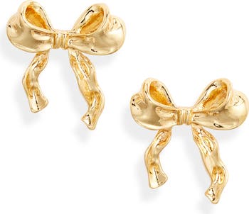 Sweeten everyday ensembles with bow drop earrings overlaid in 24-karat gold.