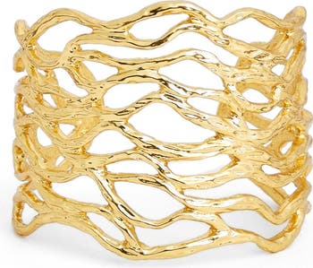 Swirling lines are lightly textured to give this statement-making open cuff the look of light dancing off rippling water. The subtle sheen of the piece creates a polished look on a bare wrist.