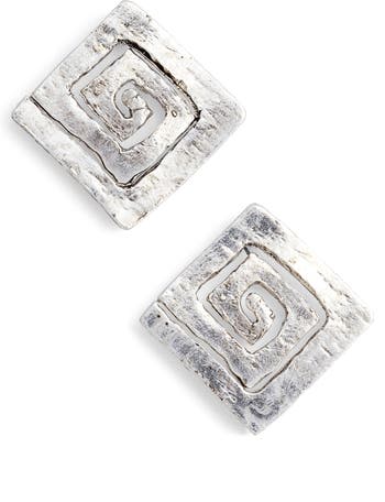 Matte precious-metal plating enriches the rough-hewn swirls of these mid-size studs.