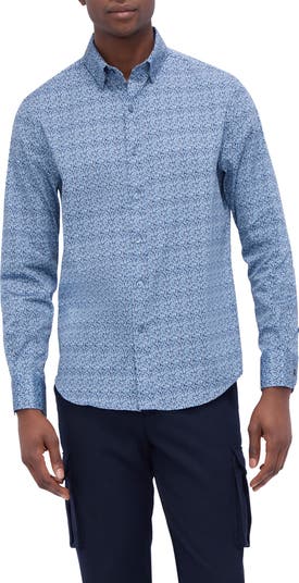 An eye-catching abstract print enlivens a stretch-cotton sport shirt cut for a modern, shaped fit that looks good tucked or untucked.