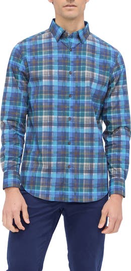 Classic checks enliven a stretch-cotton sport shirt cut for a modern, shaped fit that looks good tucked or untucked.