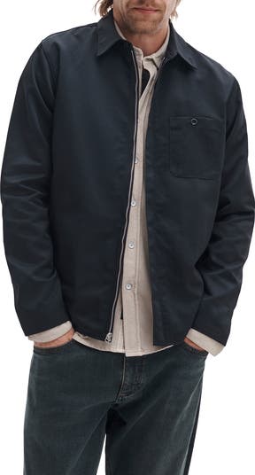 Sized just right for layering, this cleanly designed shirt-jacket features a contemporary zip-up silhouette in a lightweight fabric woven with a subtle luster.