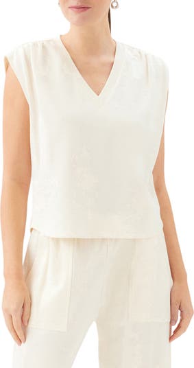 Slight sleeves frame this V-neck T-shirt cut from soft stretch-kissed cotton.