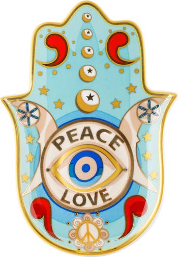- 4.5" x 6.5" Ceramic Peace Love Hamsa Plate: protection