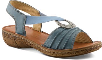 A slight chunky heel elevates this cushioned slingback sandal with elastic insets to ensure an easy entry.