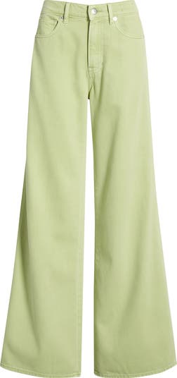 Wide hems elongate the legs of these silk-enriched jeans cast in a pistachio hue and topped with a comfortable mid rise.