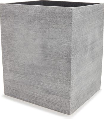 A wastebasket that brings modern sophistication to your bath décor is made to resemble the look and texture of slate in a durable, easy-to-clean resin.