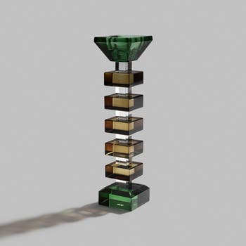 - A custom design of the candle holder is created in Art Deco style. This piece combines warm amber-colored crystal with emerald one to create an intricate play of hues in the candle light glow.