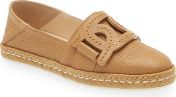 Hand stitching highlights the leather links strapping this espadrille featuring a collapsible heel for slip-on ease and a signature pebbled sole for traction.