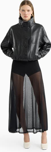 Kate is a cropped leather bomber jacket crafted from premium goat leather. Designed with a high collar and structured shape for an effortlessly modern edge.