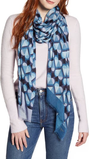 Soft fringe trims a gauzy oblong scarf fashioned with a honeycomb-inspired spade pattern.