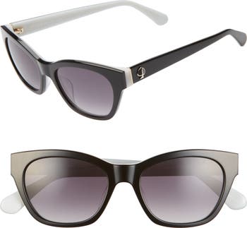 Contrast lining and signature spade hardware extend the sophisticated appeal of sunglasses in a subtle cat-eye silhouette.