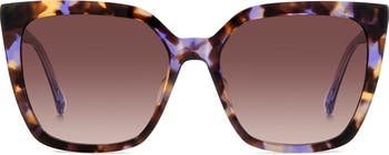 Vibrant hues enrich the glassy acetate construction of these sleek sunglasses highlighted by a cheery inscription at the temples.