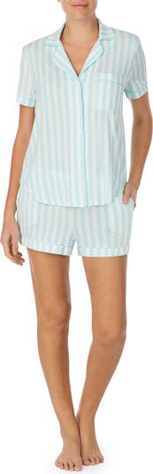 Drift off to dreamland in these short pajamas made from stretch-modal jersey that feels silky soft and features satin piping for an elegant touch.