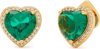 Accessorize in sweet, sophisticated style with these heart-shaped stud earrings surrounded by pavé stones.