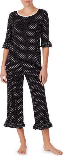 Peppy polka dots brighten up these cozy cropped pajamas made from soft stretch modal and complete with ruffle trim.