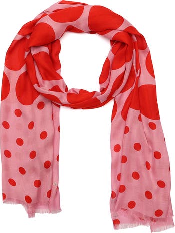 Mod polka dots channel quintessential Kate Spade whimsy on this silky scarf finished with feathery eyelash fringe.