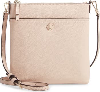 Clean lines and simple styling beautifully play up the richly pebbled leather of a streamlined crossbody bag branded by a gleaming spade logo at the front.