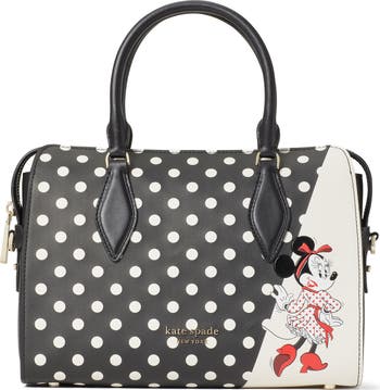 Dressed to impress, Minnie Mouse sashays across this structured faux-leather satchel that adds playful panache to any look.