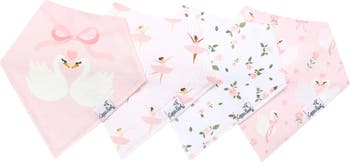 Protect baby's clothes from teething drools and mealtime spills with these bandana bibs made of a soft cotton knit with an absorbent fleece backing.