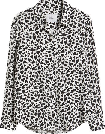 Fluttering hearts adorn a sweet shirt rendered in beloved black-and-white.
