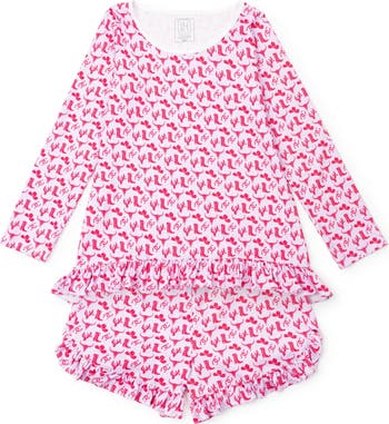Women's ruffled asymmetric long sleeve top with shorts. Made from 100% Peruvian Cotton.