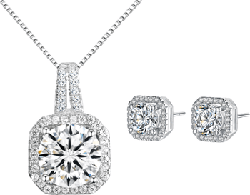 Hollywood Sensation's crystal pendant necklace the Katelyn Necklace is a Crystal Pendant Necklace for Women and Gabriela Square Simulated Diamond Studded Earrings