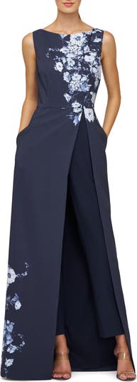 Sophisticated and structured, this jumpsuit with a skirt overlay is sure to turn heads wherever you go.