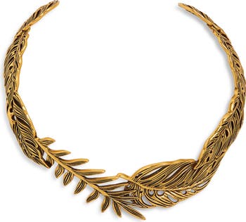 Bring botanical beauty to your neckline with this gold-plated collar necklace in a jungle foliage-inspired design.