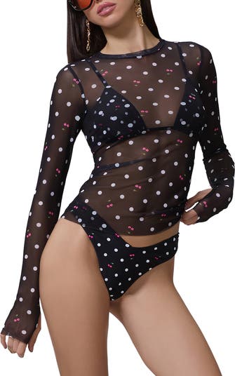 Body-skimming mesh hugs every curve in this vividly printed top framed by long sleeves with thumbhole cuffs.