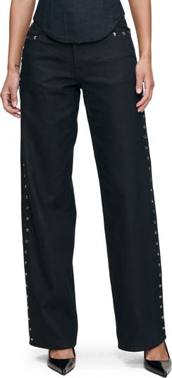 Trendy meets classic in these dark-wash barrel jeans made with structured denim and silvery rhinestones highlighting the full-length legs. This pair features SculptSystem technology that sculpts your waist, seat and thighs for a sleek silhouette.