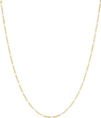 Delicate bead stations complement the polished links on this handmade chain necklace finished in a warm 14-karat-gold fill.
