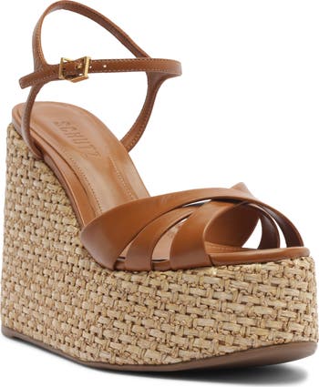 A braided raffia wedge heel brings just the right touch of earthy style to a weekend-ready sandal topped with a slim ankle strap.