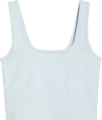 Keep it very cool from studio to street in a squar-necked tank fitted with a comfy shelf bra.