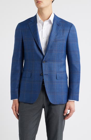 A subtly slubbed blend of wool, silk and linen in a plaid of deep, rich blues makes a versatile go-to of a sport coat tailored with relaxed construction in the shoulders and a smartly fitted waist. Wear it to complement any semiformal outfit or bring an elevated finish to a more casual look.