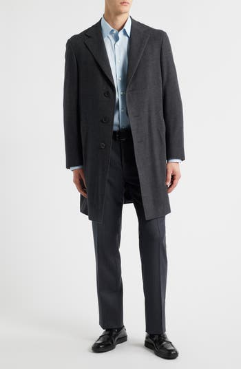 Premium Italian wool distinguishes this coat that's tailored in a slim fit for a smartly refined silhouette. Styled with traditional notched lapels, it brings an elegant finish to any semiformal look.