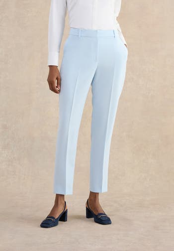 Streamlined mid-rise tailoring sculpts the silhouette, a crisp crease and ankle-grazing length for confident office-to-evening presence.