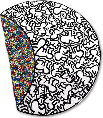 This reversible play mat features eye-catching designs perfect for baby's visual development. A black-and-white print is perfect for newborns, while Keith Haring's colorful print is ideal for older babies. The comfy padded interior makes the mat perfect for floor and tummy time. The visual designs will help encourage baby to lift their heads, working on neck, shoulder and back strength.